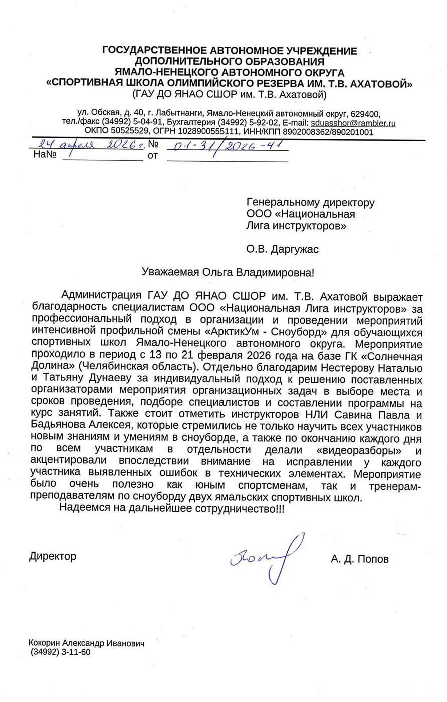 Было подписано соглашение между Дирекцией курорта «Шерегеш» и Национальной Лигой инструкторов о сотрудничестве и взаимодействии в части повышения профессионального мастерства инструкторов, качества оказываемых ими услуг, предоставления льготных условий на участие в курсах, проведения совместных спортивных, образовательных и иных мероприятий.
